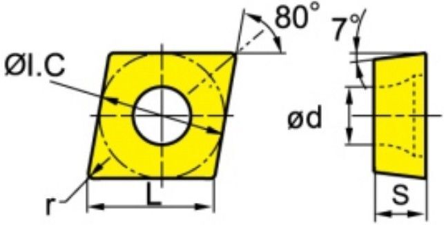 - Тип пластины: CCMT. Положительная ромбическая пластина с включённым углом 80° и задним углом обеспечивает лёгкое врезание, сниженное усилие резания и меньшую нагрузку на шпиндель и державку.