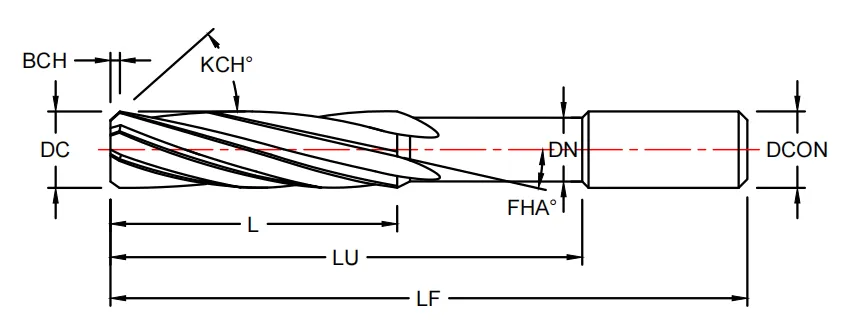 - Прямая стружечная канавка. Прямолинейное расположение канавок обеспечивает хорошую жёсткость инструмента и стабильный рез при обработке сквозных и относительно неглубоких отверстий.