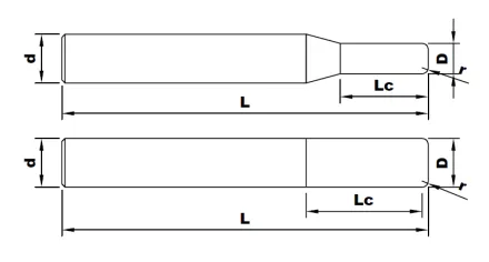 - Хвостовик: цилиндрический, гладкий. Круглая гладкая ручка с точной фаской облегчает установку и быструю замену инструмента в патронах и цангах станков с ЧПУ.